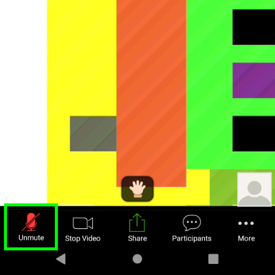 Mikrofon si zapni až jsi vyvolaný. To uděláš stiskem tlačítka "Unmute" (zeleně zvýrazněno).