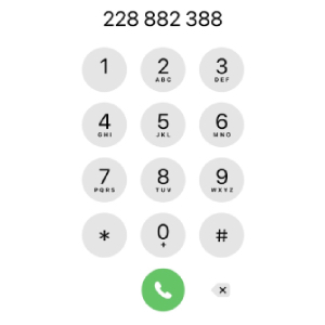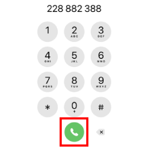 Zadej telefonní číslo pomocí tlačítek na displeji:
