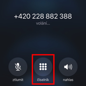Zobrazil sis číselník v rámci hovoru. Můžeme pokračovat dál.